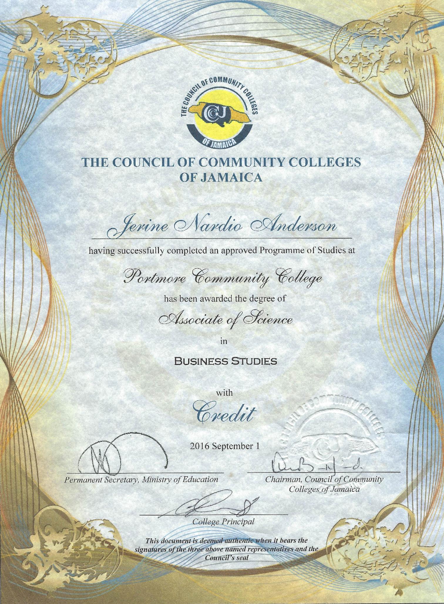 I attended the Portmore Community College and aside from earning my Associate of Science Degree in Business Studies I have gained experiences that has grown me as a person.