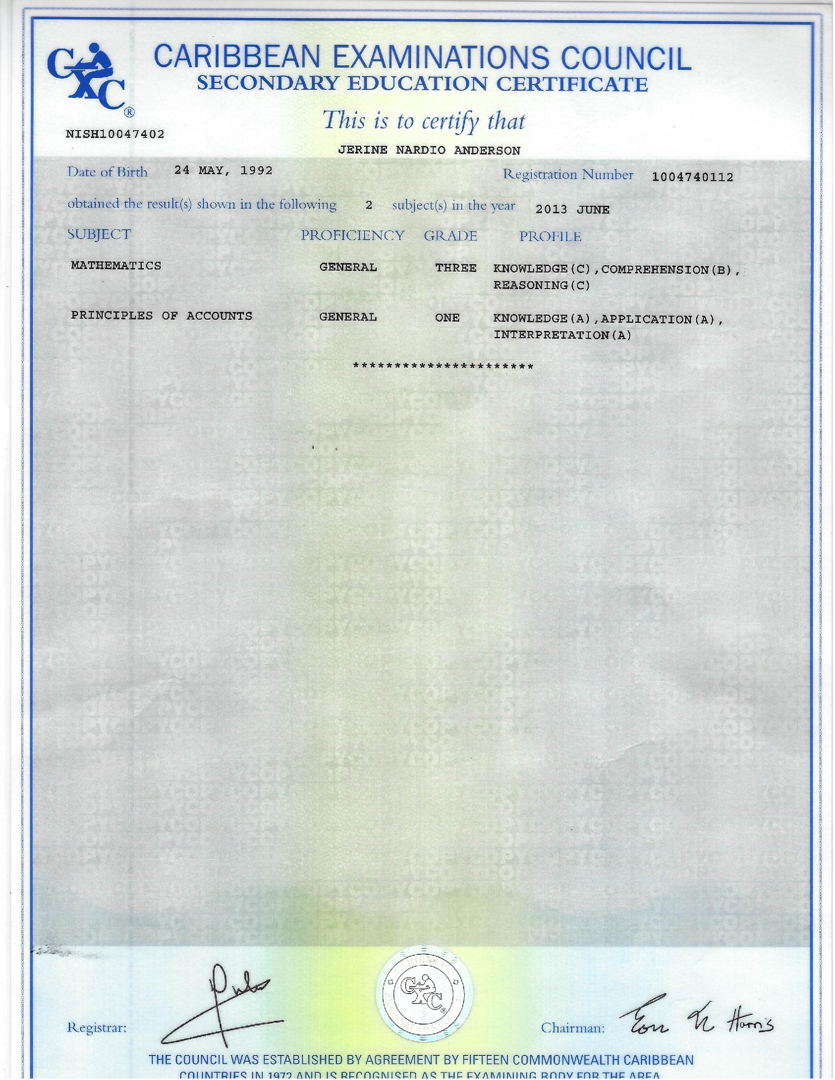 I attended Jonathan Grant High School and graduated with Seven CSEC Passes.